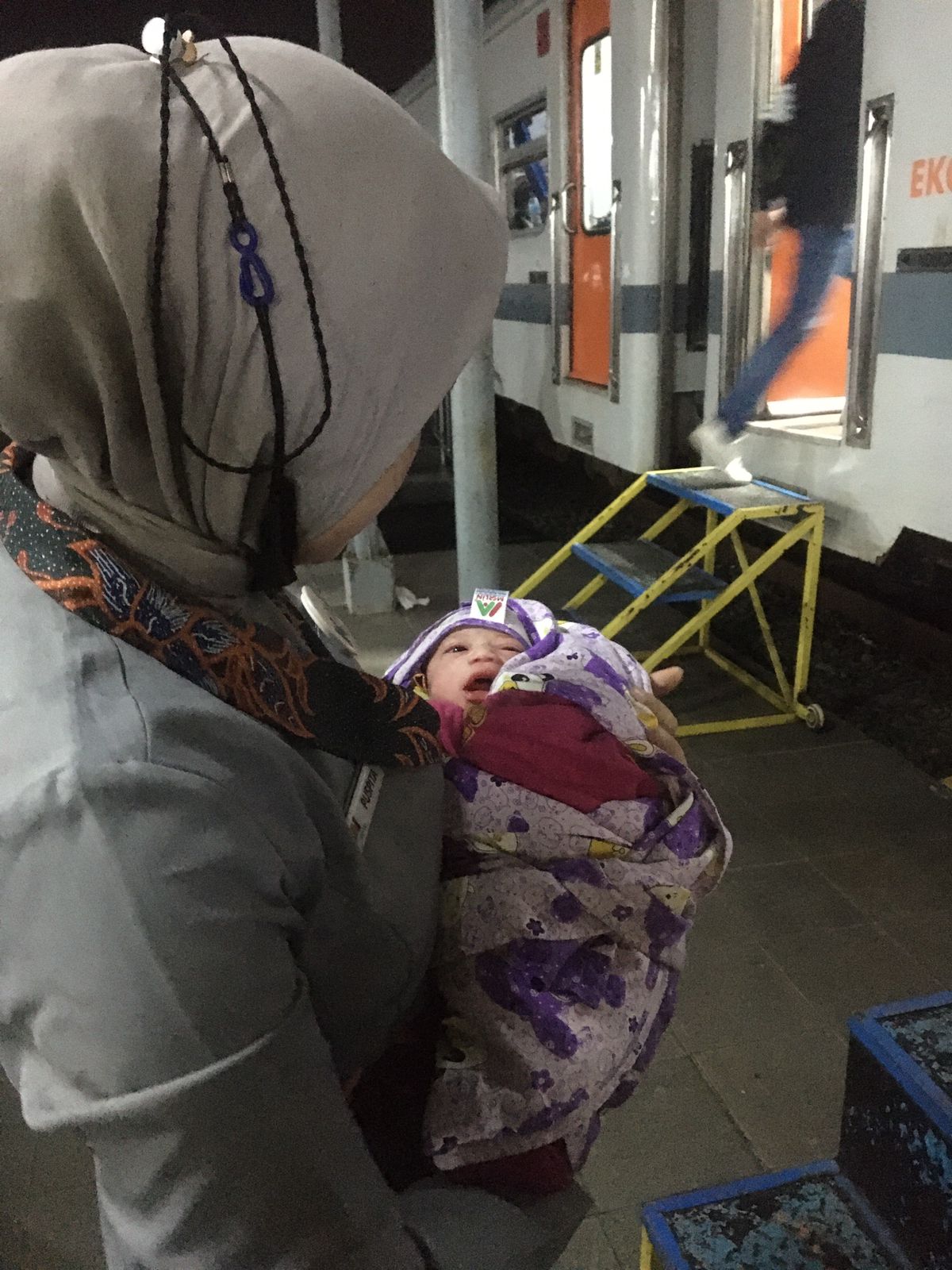 BANDUNG — Petugas KAI membantu proses persalinan salah seorang pelanggan di atas Kereta Api Kahuripan, Kamis (09/02). Kejadian bermula saat salah satu pelanggan yang sedang hamil menaiki KA Kahuripan relasi Kiaracondong – Blitar. Saat perjalanan KA masuk di Stasiun Bojong, pelanggan kereta atas nama Salsabilla dengan tiket tujuan Stasiun Lempuyangan merasakan sakit dan kontraksi pada perutnya seperti hendak melahirkan.